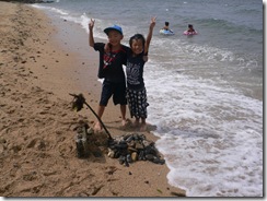 帰りに、やぎのメーのお父さんと、お母さんに会いに行く。メーは、お母さんにそっくりだ。お父さんは体も声もとても大きかった。亮汰は、ヤギと見詰め合っていて?交流していたよう。